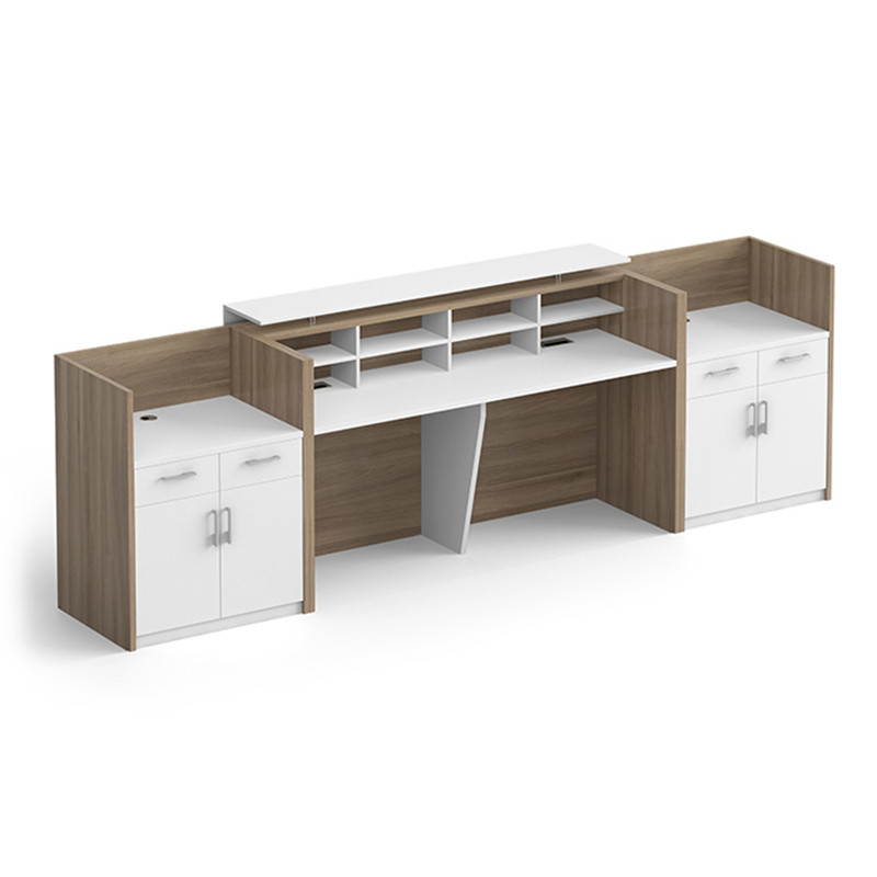 1. Nicely accommodates 2 receptionists with plentiful storage and work area for each.